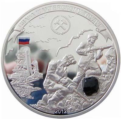 Эксклюзивная монета с изображением шахтеров, занятых добычей угля в забое, отчеканена по заказу банка и будет продаваться только в ВТБ24 в Кемеровской области. Отчеканена монета на монетном дворе B. H. Mayers Kunstprägeanstalt Gmbh, Германия. Реверс несёт изображения шахтёров, добывающих уголь в забое. На заднем плане обязательные атрибуты угольных предприятий — копра и автомобиль БелАЗ. Над копром в цвете приведено изображение флага Российской Федерации. По верхнему контуру реверса монеты размещена надпись: «Слава шахтерскому труду». «Технология чеканки — пруф (улучшенное качество): ровное зеркальное поле контрастирует с матовым рельефом изображения. На этом фоне четко выделяется маленький кусочек „черного золота" — настоящего коксующегося угля», — сообщает пресс-служба администрации Кемеровской области. Монета 5 долларов отчеканена из серебра 925-пробы (proof), вес чистого металла 25 г. Тираж — 2000 шт. Источник: Блог Global Coins | |